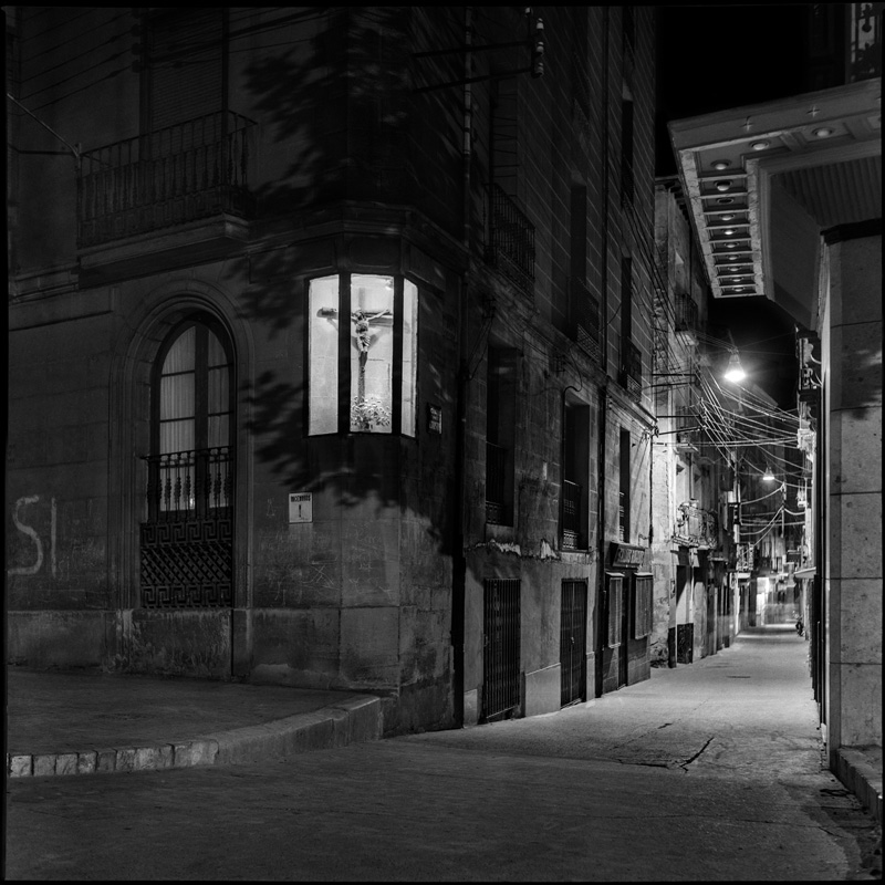 Entre sus series, destaca la dedicada al Logroño nocturno, que compone una documentación desconocida de la ciudad a la luz de las farolas.
